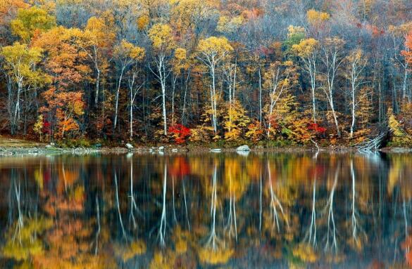33、二月春暖芳菲起,十月秋瑟草枯荣。世虽无常人难料,因果循环却是宗。生死穷富情与恨,湖心雁影转成空。