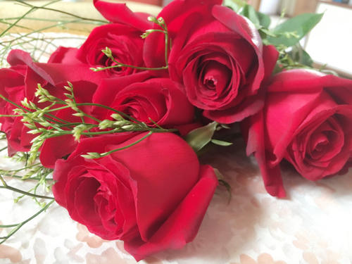 42、早上花店送过来时一头雾水,很是惊讶,生平第一次收到玫瑰花。