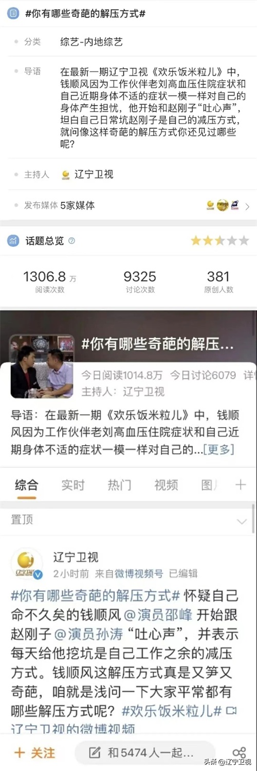 钱顺风的解压方式是不是很特别?您有没有同款操作?随着节目播出,第二期话题词#你有哪些奇葩的解压方式# 在微博文娱榜出圈啦。